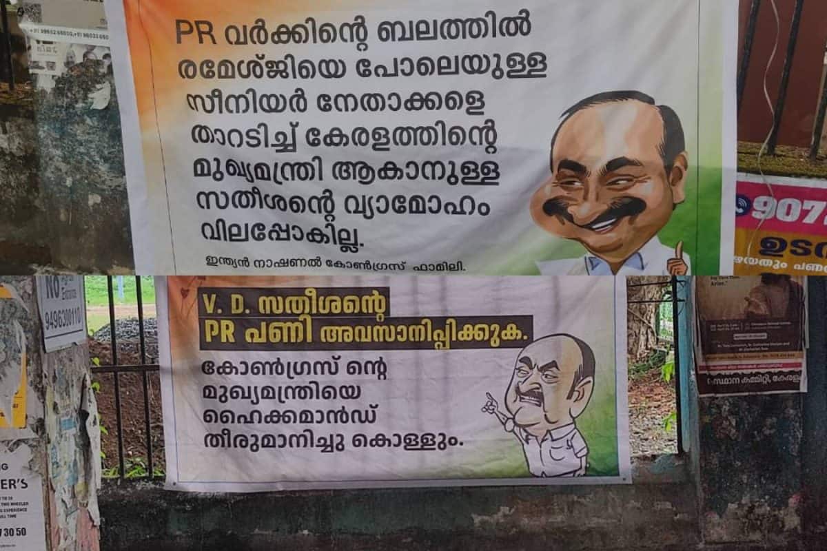 മുഖ്യമന്ത്രിയാകാനുള്ള മോഹം നടക്കില്ലെന്നും 'കോൺഗ്രസ് ഫാമിലി' എന്ന പേരിലെ ഫ്ലക്സിൽ കാണാം
