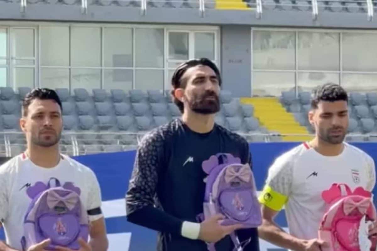 മിനാബ് സ്കൂൾ ദുരന്തത്തിൽ കൊല്ലപ്പെട്ട കുരുന്നുകൾക്ക് ആദരം; സ്കൂൾ ബാഗുകൾ നെഞ്ചോട് ചേർത്ത് ഇറാൻ ഫുട്ബോൾ ടീം